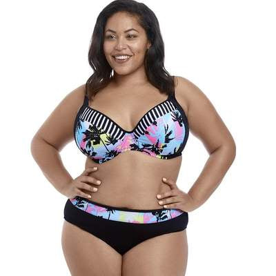 Elomi Malibu Days high rise bikini brief strut your stuff in style on the beach this season with this gorgeous monochrome style bikini brief. Fully lined with great rear coverage. Bright vibrant palm tree print around the waist to give it that on trend look.