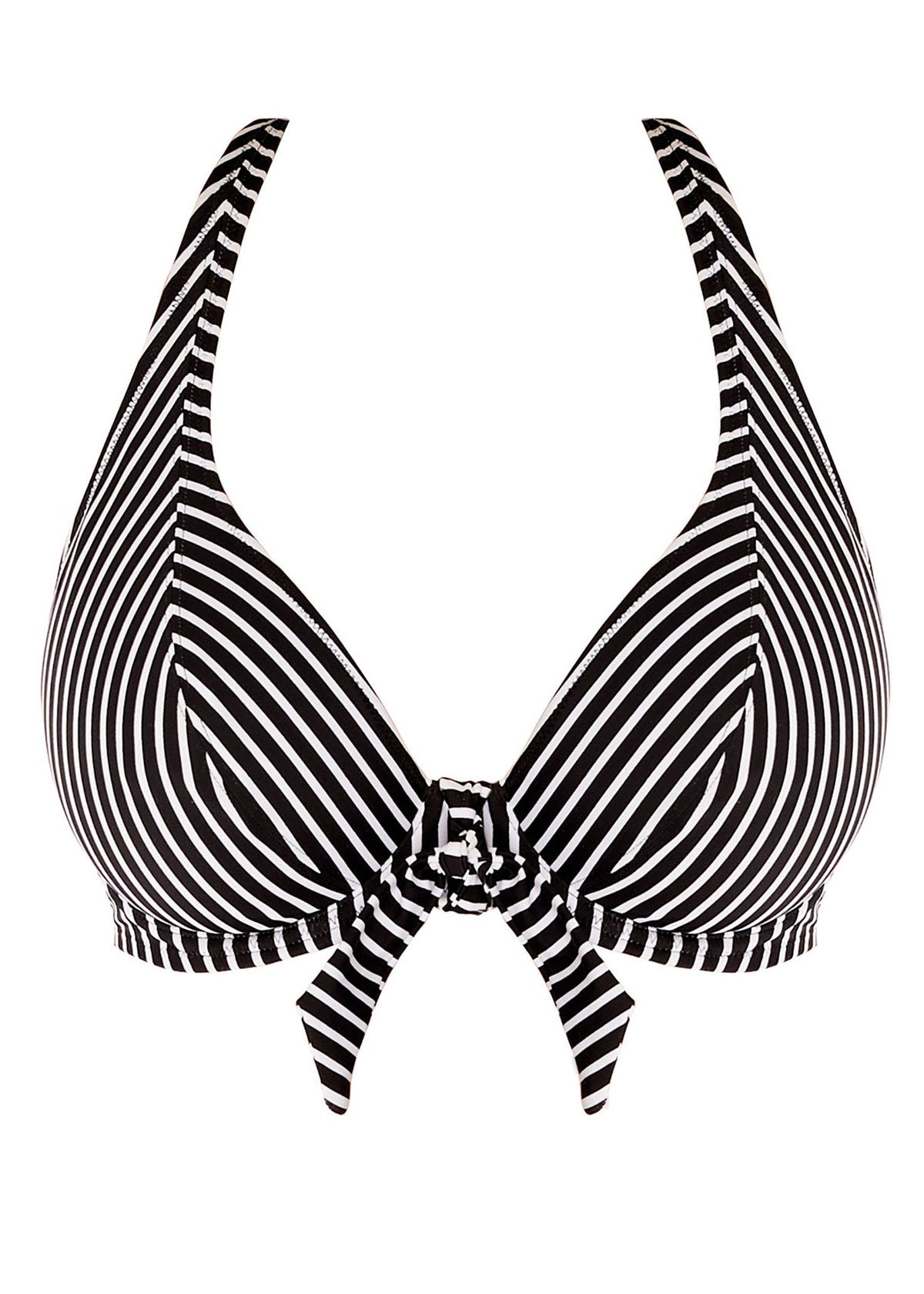 Contemporary meets retro with Freya's Beach Hut Bikini Top in a Black colourway. The fashion-forward shape is designed with a chevron print and a low plunging neckline which features a decorative bunny knot tie. Convertible straps allow the Bikini Top to be worn over the shoulder or cross back styling.