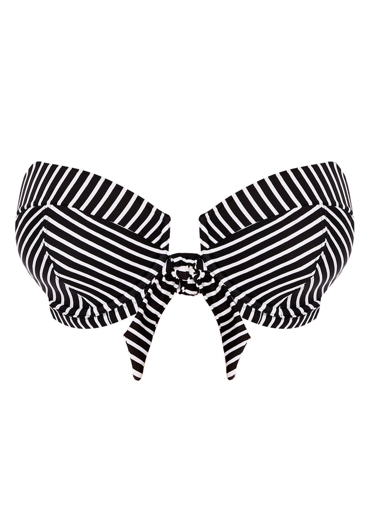 Hit the beach in style with the stunningly classic Black Bandeau Bikini Top, the detachable straps allow you to effortlessly change your style, while the lightly padded foam cups provide a smooth rounded shape and support. An open centre front and bunny knot tie completes the retro look.