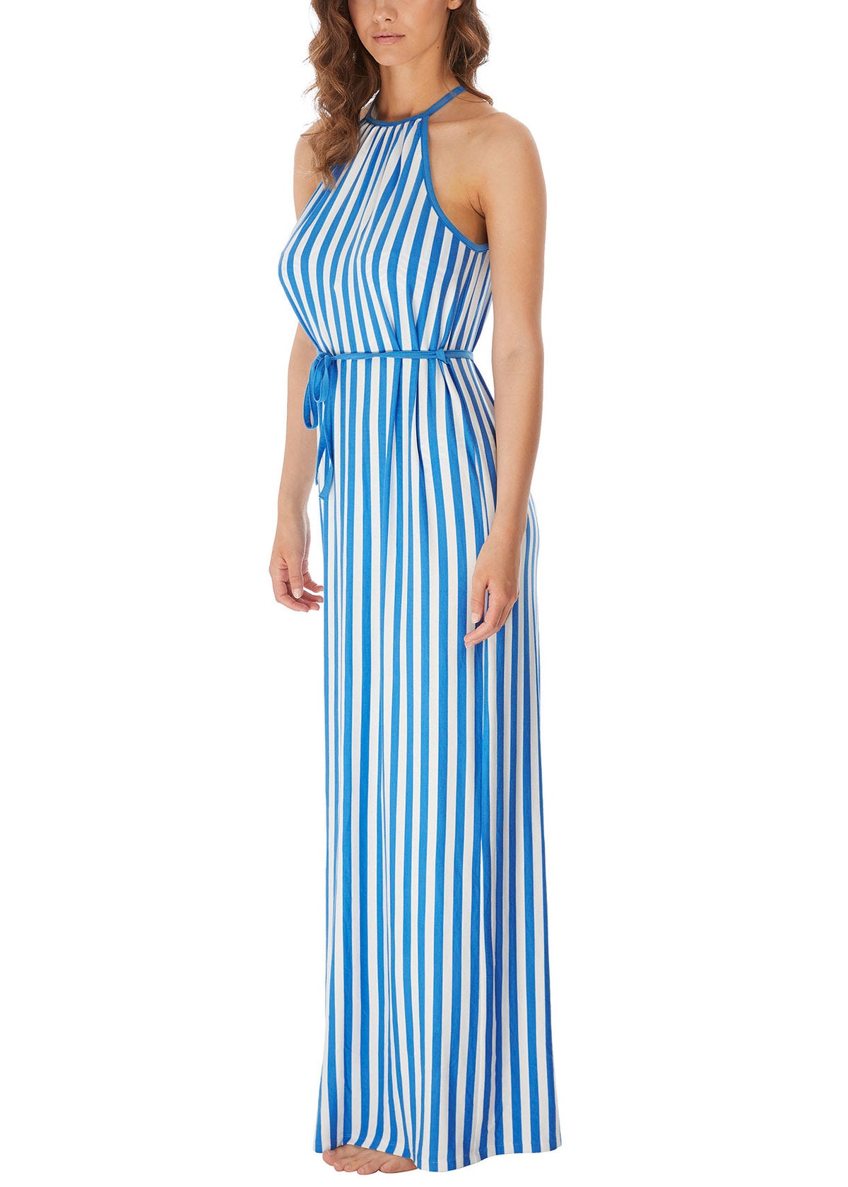 Freya’s Beach Hut Maxi Dress will be your new holiday must-have. The stripe print in a Blue Moon colourway and high neck styling creates a flawlessly chic look that you can wear from beach to bar. Complete with a wrap-around belt to accentuate your waist.