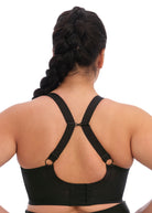 Achieve your goals in Elomi's Energise Sports Bra in Black, featuring a unique non-compression design with side support that is perfect for high impact activity. Complete with a clever J-hook fastening to offer added support in a racerback style.