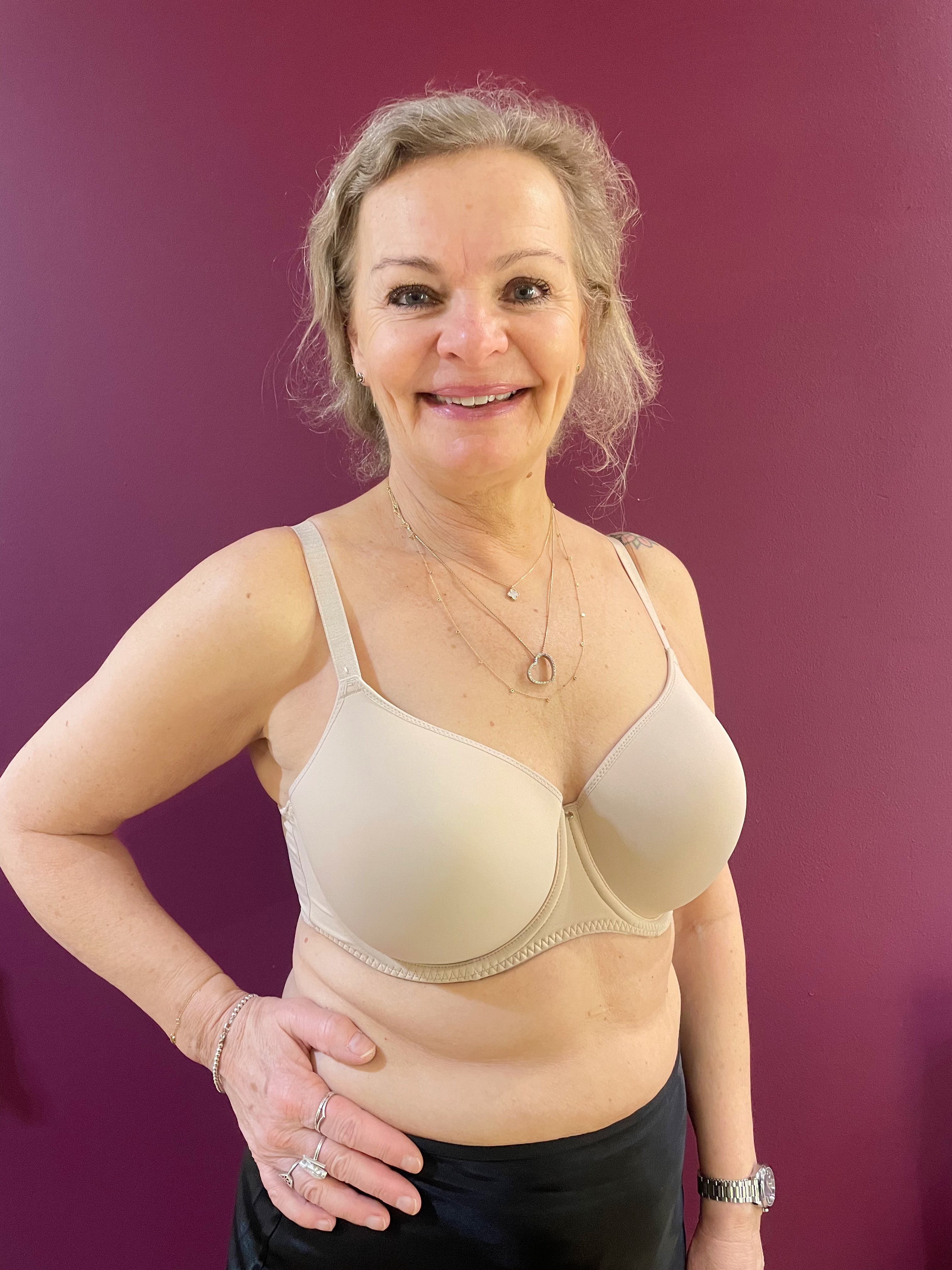 Perfect for everyday wear, the Aura Moulded Bra in Natural Beige creates a beautifully smooth profile offering complete comfort. Featuring soft inner cups and a padded hook and eye for the ultimate support in cup sizes D - HH.