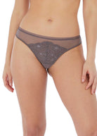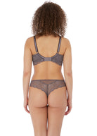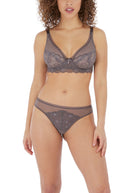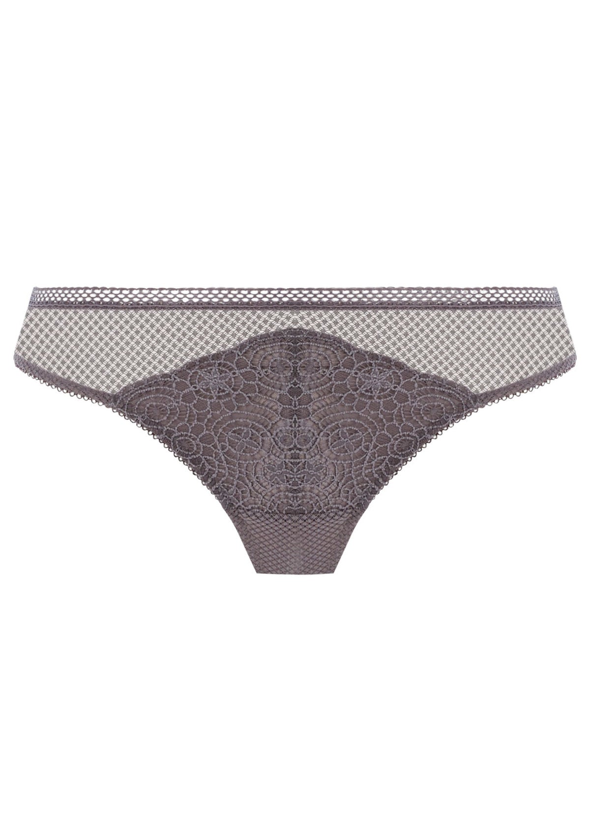 Uncover the Expression Brazilian style in an elegant Shark shade, featuring statement lace and geometric mesh for a feminine look. The Brazilian styling offers less back coverage, alongside scalloped edging for a no VPL finish in sizes XS – XL.