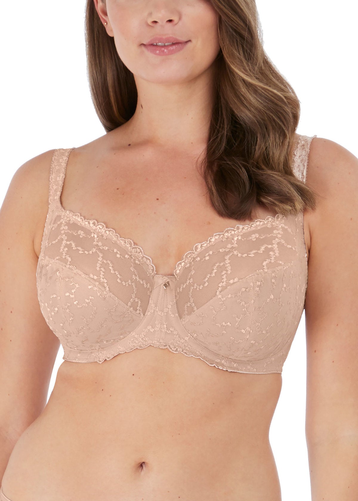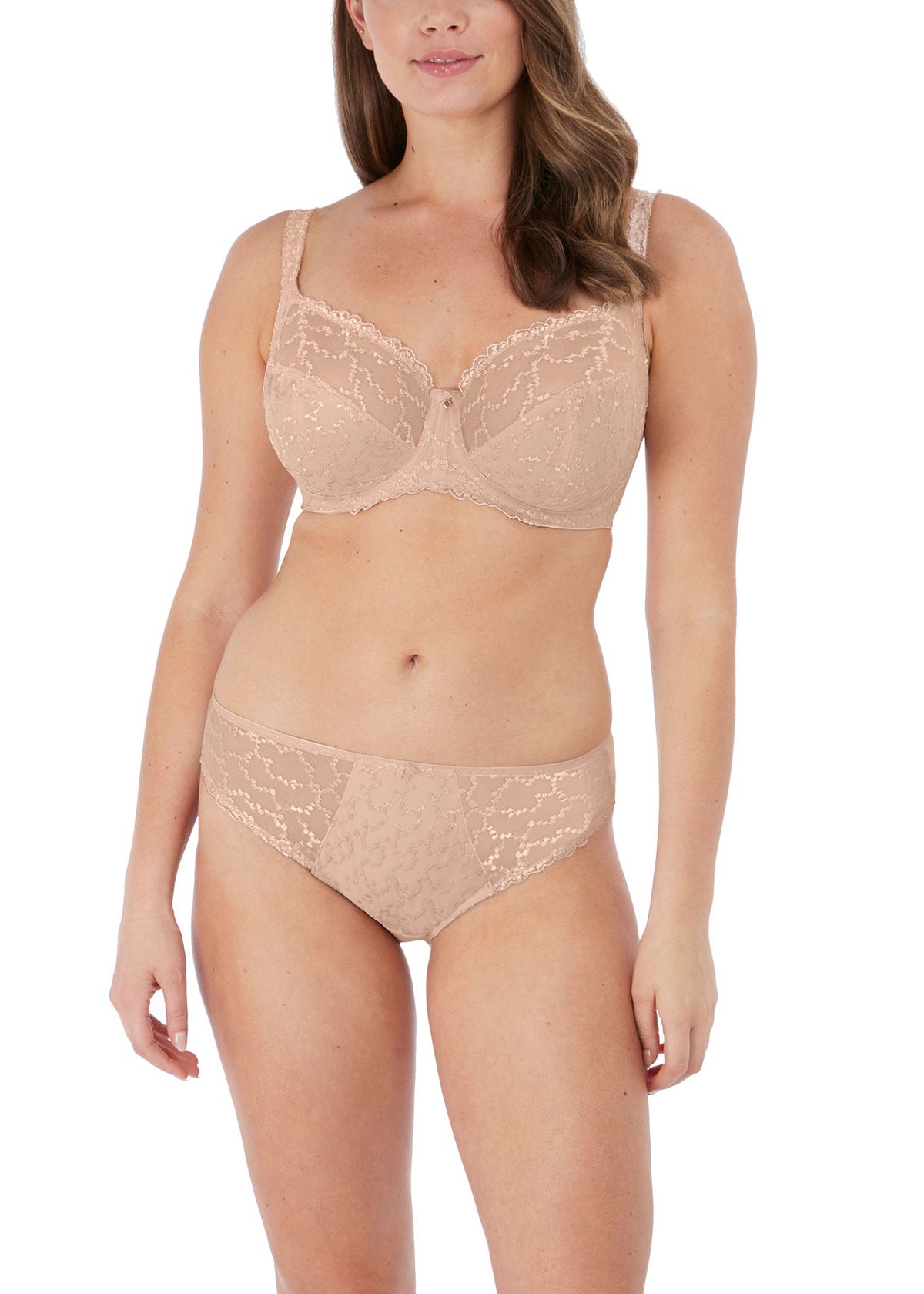 The Fantasie Ana Side Support Bra in Natural Beige combines Swiss-crafted embroidery with functional architecture. A three-part cup construction delivers pronounced uplift and forward projection, whilst integrated side support panels enhance stability and definition. Refined feminine detailing meets engineered performance in this versatile neutral tone, positioning it as an essential piece for those seeking both aesthetic refinement and reliable daily support.