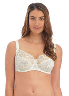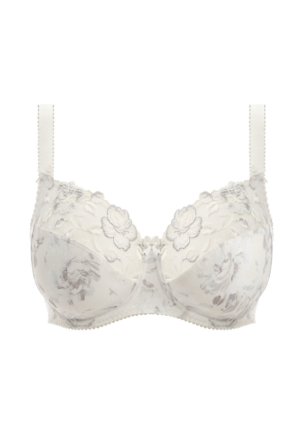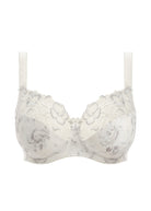 Discover Fantasie's Caroline collection, featuring elegant two-tone silver floral motifs and Swiss-designed embroidery against a classic Ivory base. Finished with a delicate bow at the centre front, the Side Support Bra offers both comfort and support with three-piece cups and wide wires.