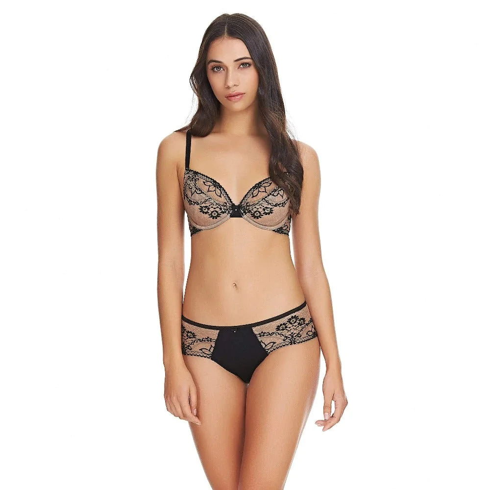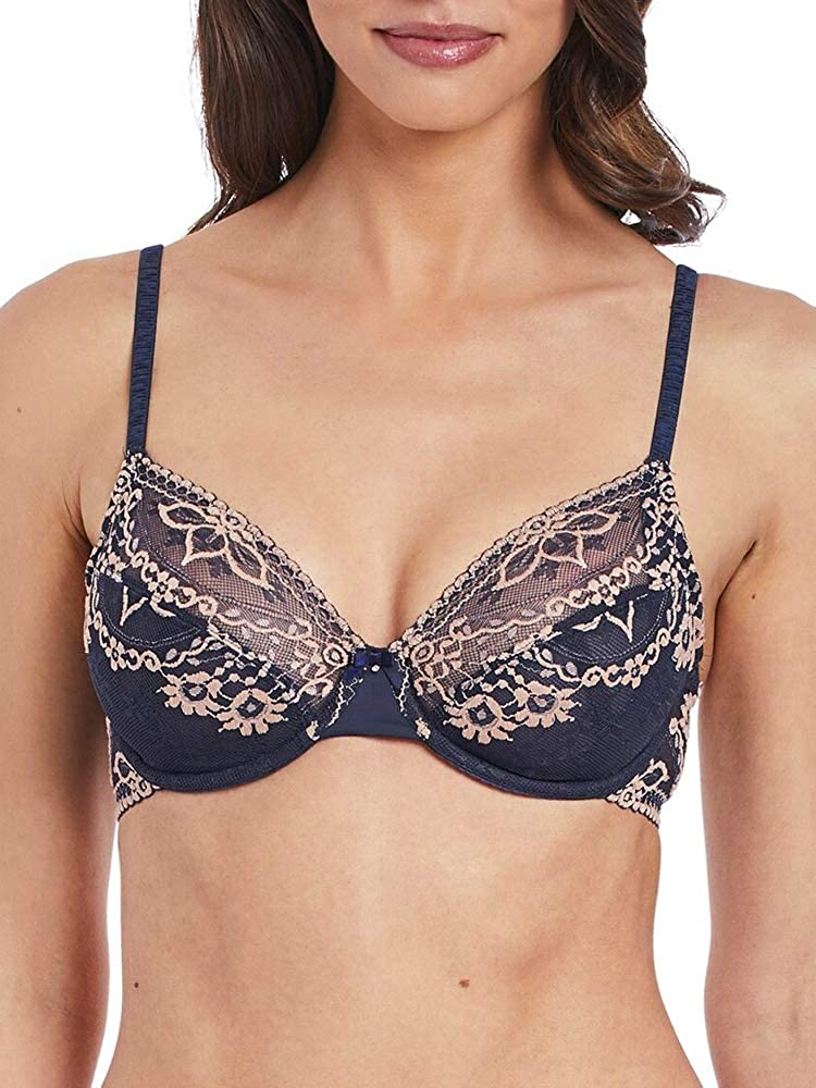 Be embraced by impeccable fit and sensuous fabric with all new Wacoal Frivole, boasting a delicate two-tone stretch lace with an eye catching art deco inspired motif. The average wire bra features a two section cup and sheer elastic to maintain fit and support.