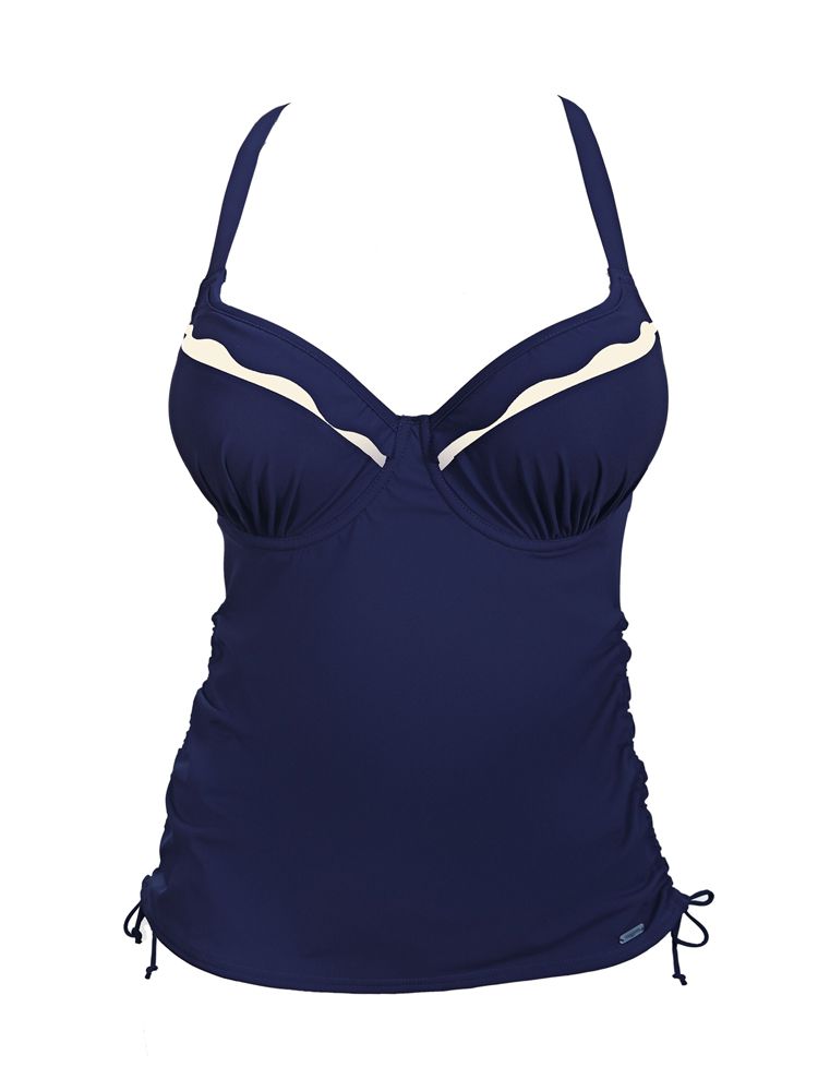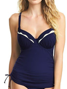Sainte Maxime by Fantasie a sleek and stylish swimwear collection which will keep you looking confident and cool in the sun! A makeover for the traditional nautical themed swimwear this collection features a black and cream/navy and cream colourways with scalloped edge detailing. The Tankini top has underwired moulded foam cups for support and all day comfort and modesty whilst the gathered sides flatter the tummy area. Fully adjustable shoulder straps for the perfect fit and it fastens at the back with 2 hook and eyes across 3 rows.