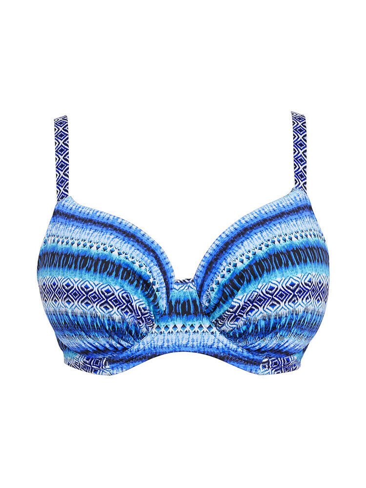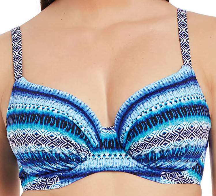 La Manga by Fantasie, a bold and beautiful mix and match swimwear collection featuring two on-trend geometric prints in vibrant shades of blue, perfect for relaxing by the beach or pool. The full-cup bikini top flatters your bust and adds comfort and support for all-day wear. The gathers on the lined cups add extra detail against the beautiful print.