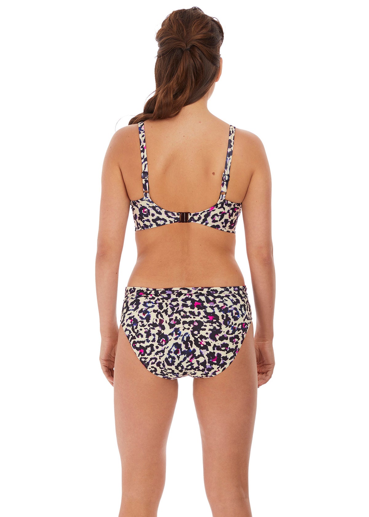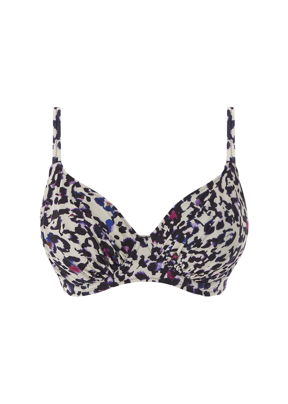 Showcasing an eclectic inky animal print, Fantasie's Bonito Full Cup Bikini Top in Amethyst offers gathered cups to flatter all shapes, plus a concealed side sling for all-day support.