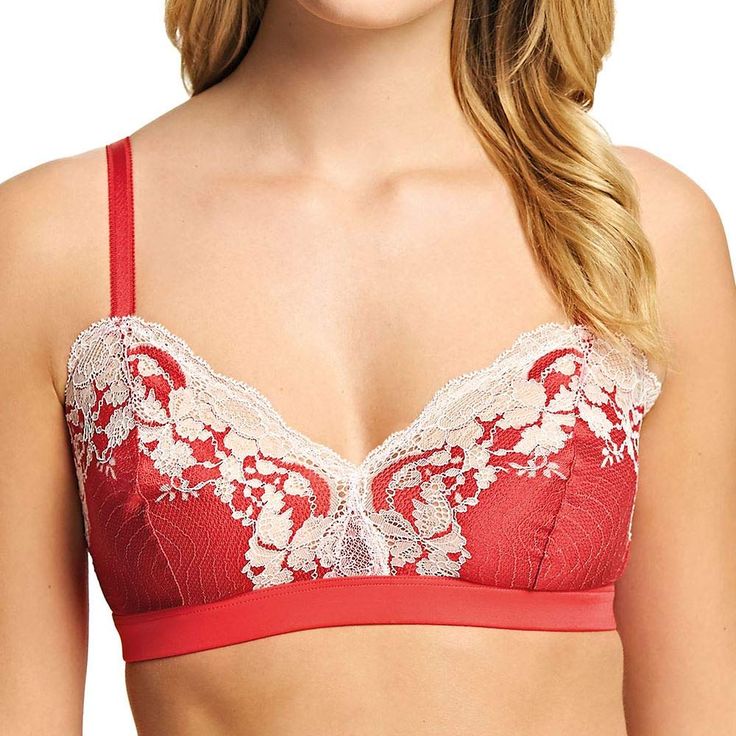 Wacoal's Lace Affair Bralette in a two-tone Tango Red/Silver Peony colourway, showcasing intricate lace and scallop edges for a beautiful look, whilst offering complete comfort.
