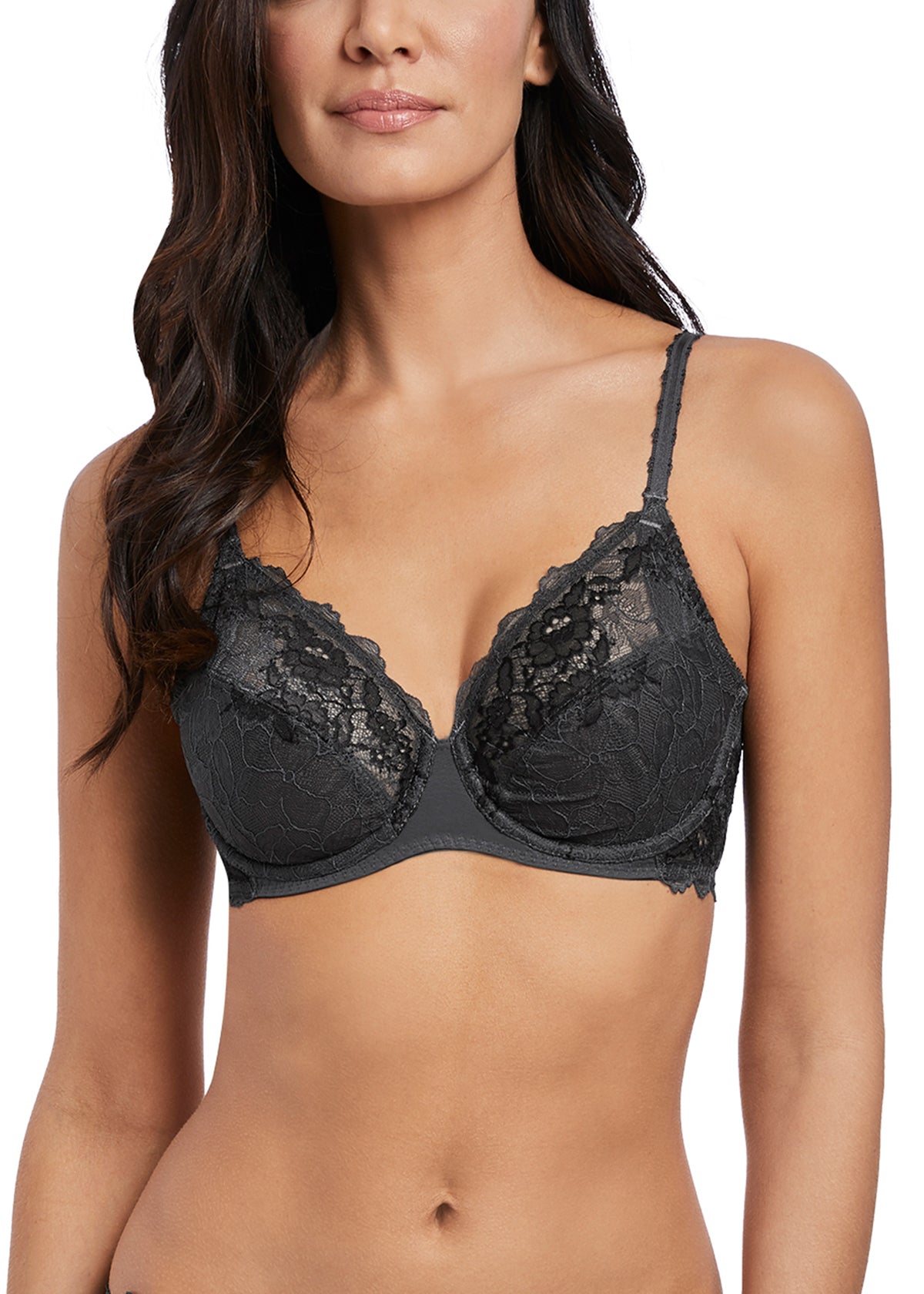 - Stretch lace bottom cup is lined with sheer mesh to give natural shape and uplift