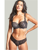 Complete your black lace look with the Allure Brazilian. Featuring sheer lace that flatters your body and a flirty keyhole cut out at the back. Matching gold ring detailing refreshes this pant for an overall sultry and sophisticated lingerie look.