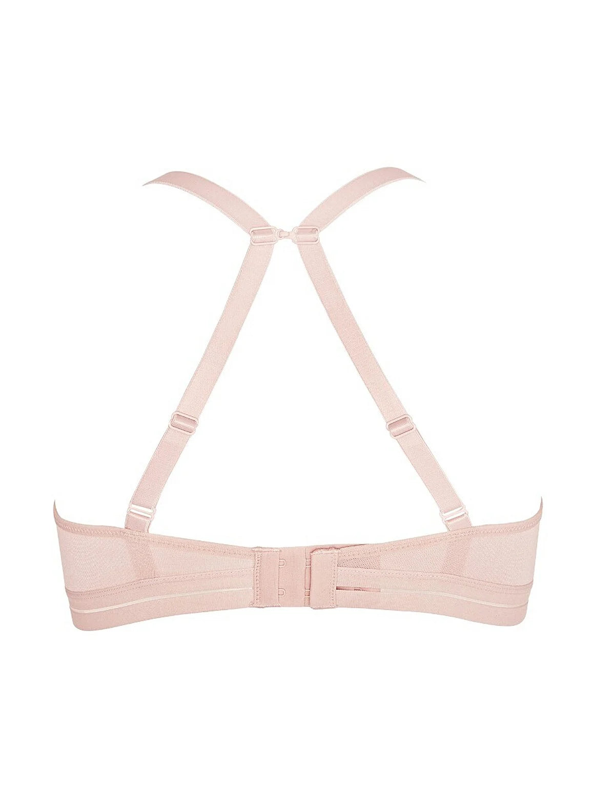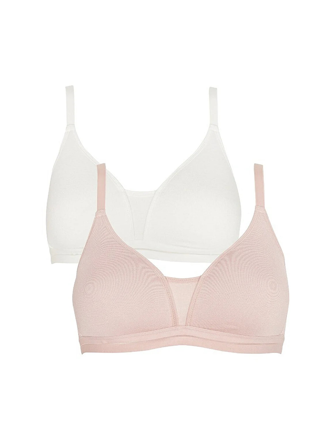 2 pack t-shirt bra with optional racerback. This wirefree, t-shirt bra comes in a two pack including one blush and one ivory colour. Posie is a great everyday style designed for comfort with lightly padded cups. The addition of a discreet hook on the back means they can also be worn as a racerback making it practical under clothing.