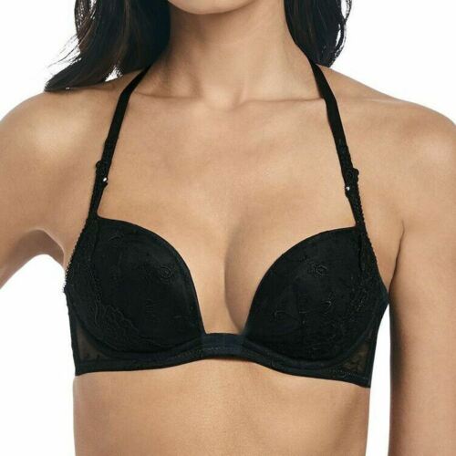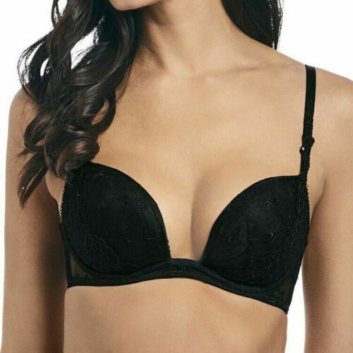 Subtle black-on-black botanical lace detail sits flat for ease of wear, ultra deep plunge gives shape with a very sultry edge; and the bum-skimming suspender gives a nod to decadent days-gone-by.